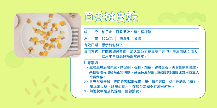 百香果酸甜融合柚皮清香。